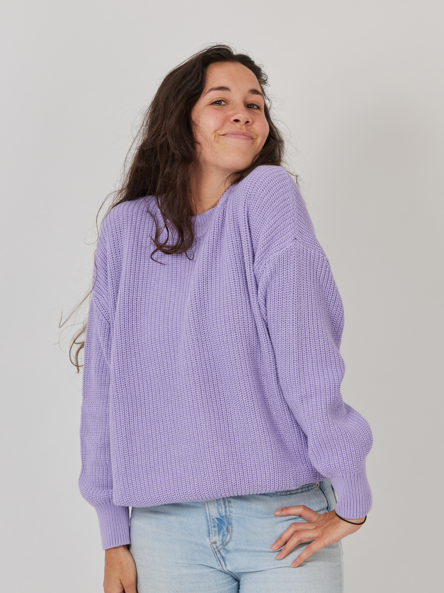 Der Farbton Lavendel bringt Lebendigkeit in den Alltag und ist ein echter Hingucker. Aber nicht nur Optisch ist unser Strick "Lia" eine absolute Besonderheit, denn auch an den kalten Tage ist der lässig geschnittene Pullover genau das Richtige. Der grobmaschige Strick ist der absolute Favorit von unserem Happy Face Lia, die für euch jede Bestellung persönlich an der Nordsee verpackt.